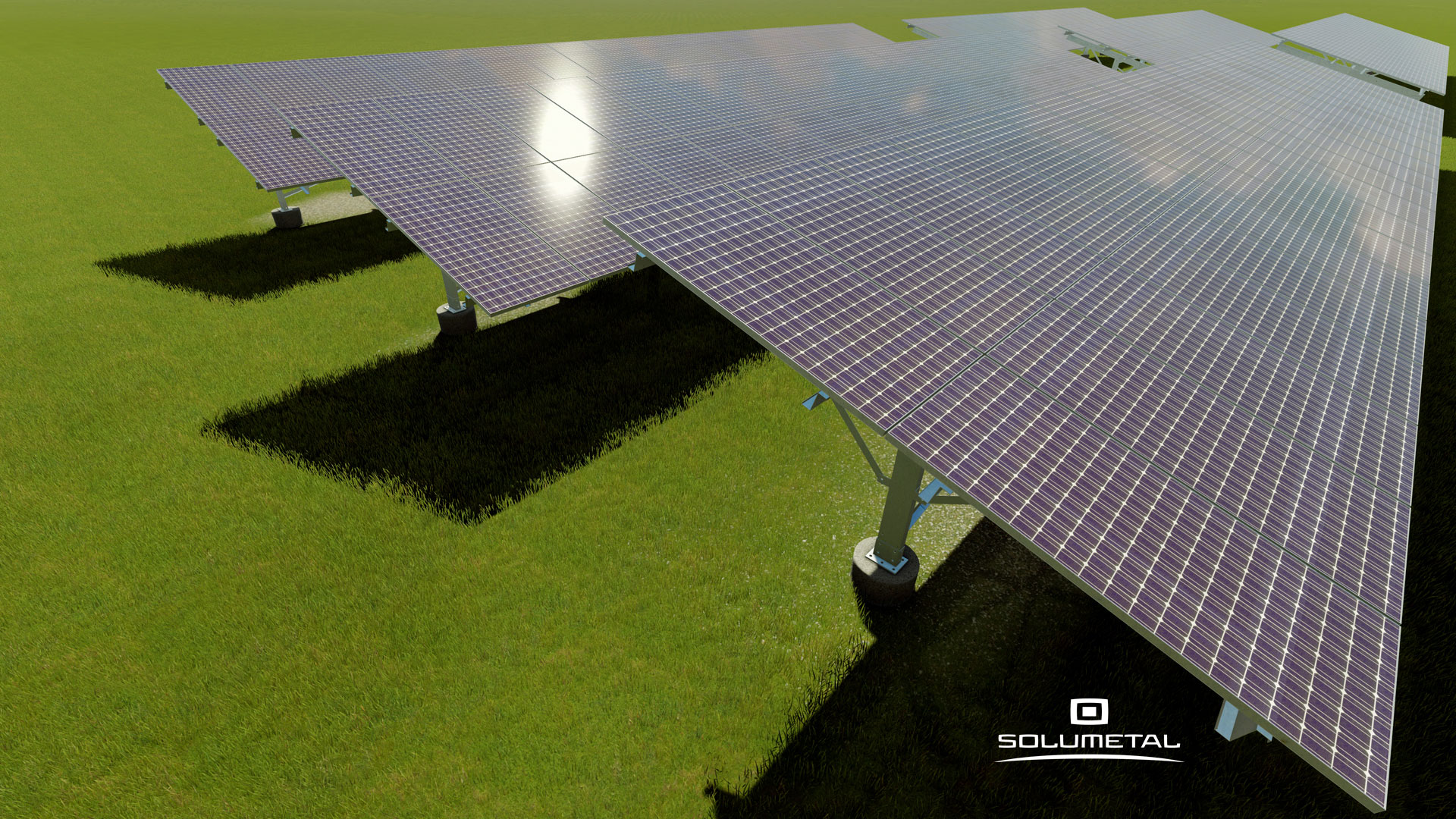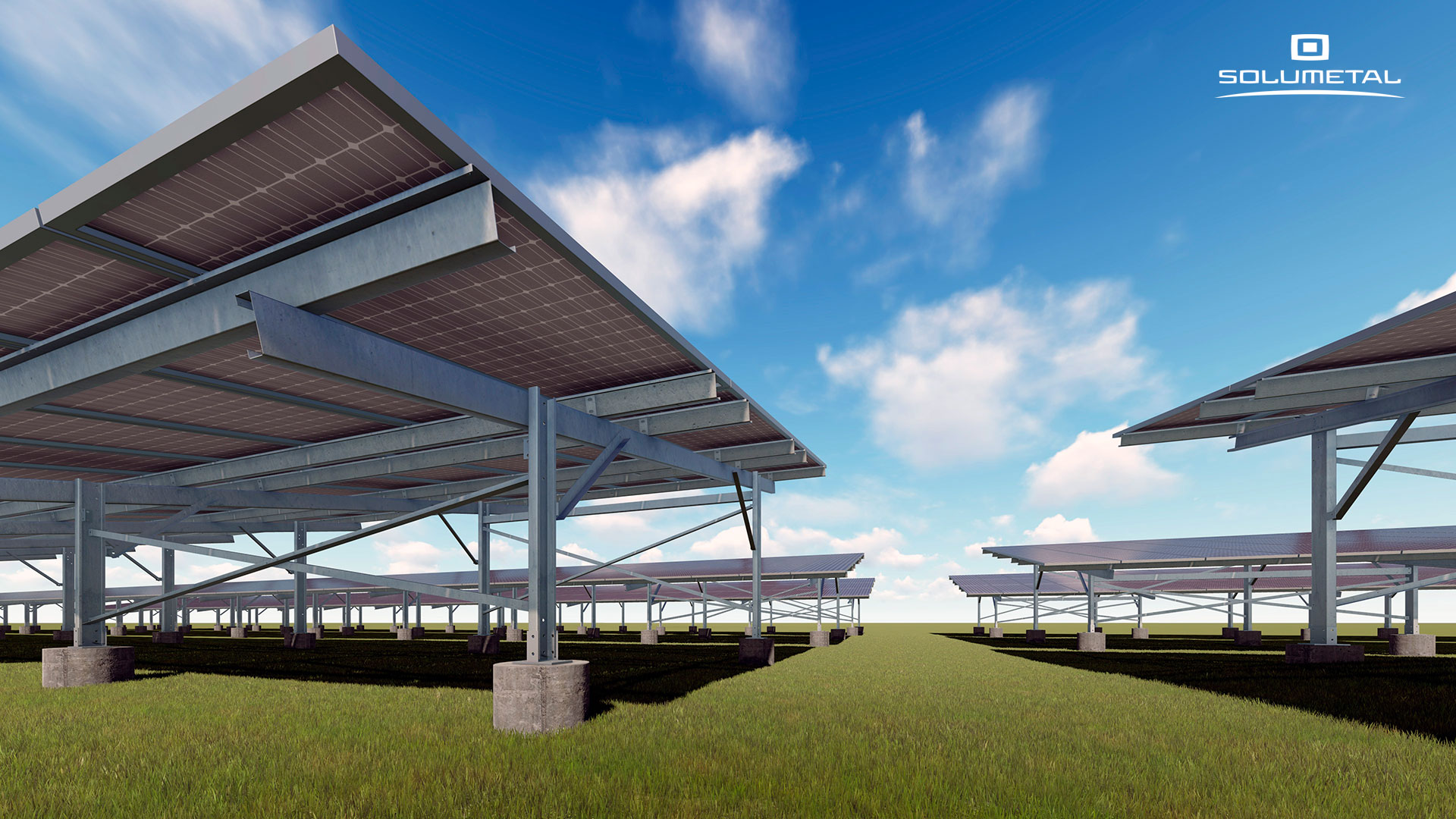 O Sistema Solar SOLUFRAME® são estruturas metálicas compostas por perfis conformados a frio (dobrados), próprias para utilização em micros, pequenas e grandes usinas solares de solo. Fornecidas em kits sob medida e já preparadas para a montagem, tendo como base os aços estruturais ZAR 400 Z275 galvanizado NBR 7008 e o CIVIL 300 galvanização NBR 6323, atendem os diversos ambientes de exposição em nosso país. Essas estruturas são projetadas conforme os diversos modelos de datasheet de painéis fotovoltaicos do mercado, dispensando os perfis de alumínio para a instalação das placas.